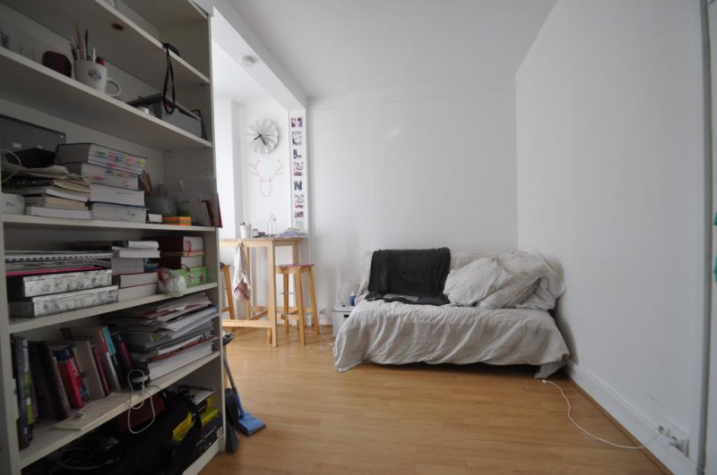 M°Belleville Dans Immeuble ancien au 5ème étage sans ascenseur, beau studio de 17m² en très bon état comprenant une pièce principale un coin...