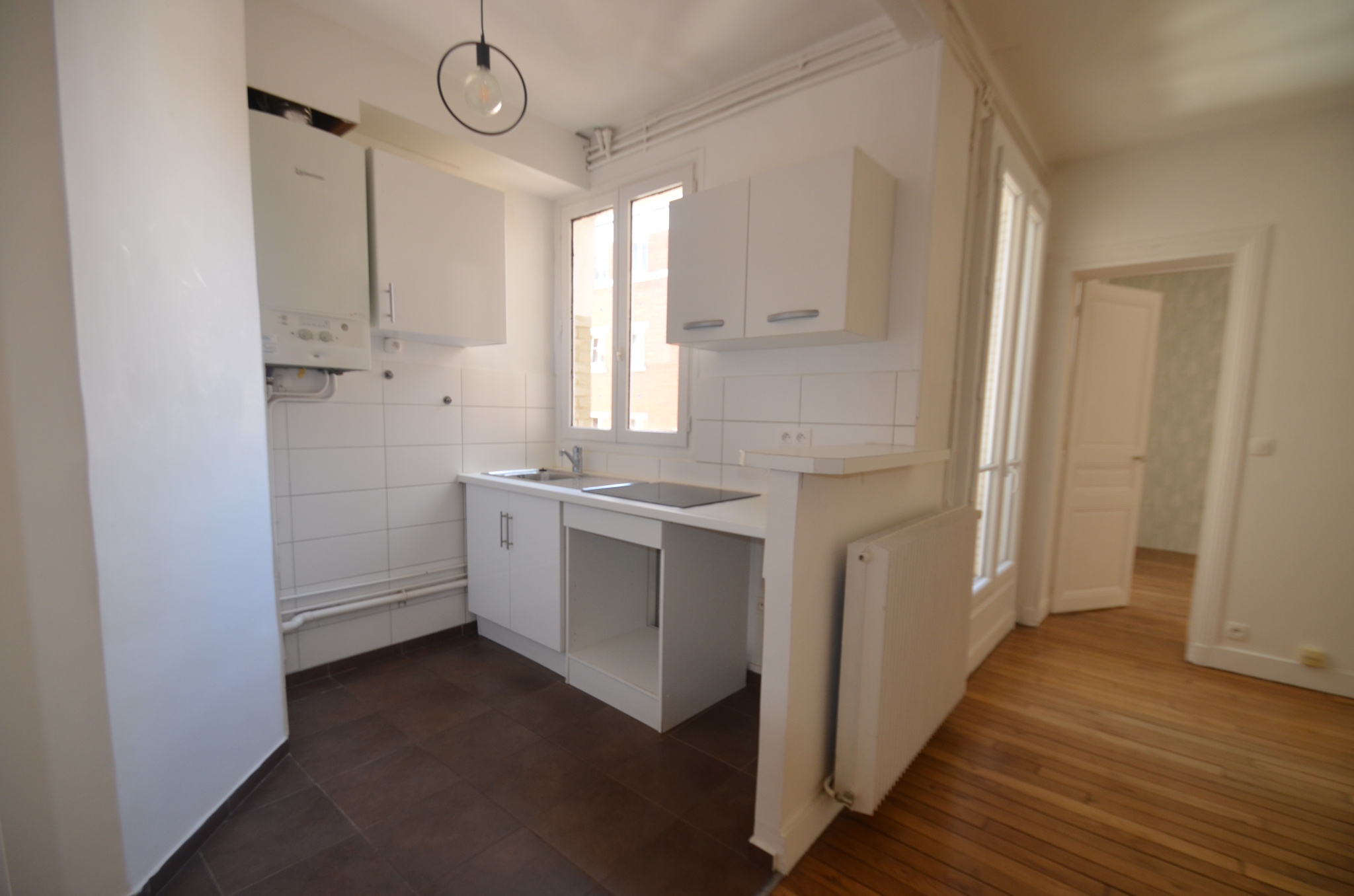 M °Volontaires. Dans Immeuble Ancien au 4ème étage avec ascenseur, un appartement de 57m² comprenant : une entrée, un grand séjour, une chambre avec un coin bureau, une cuisine ouverte, une SB et un WC séparé. Parquet au sol chauffage Gaz. Calme sur cour