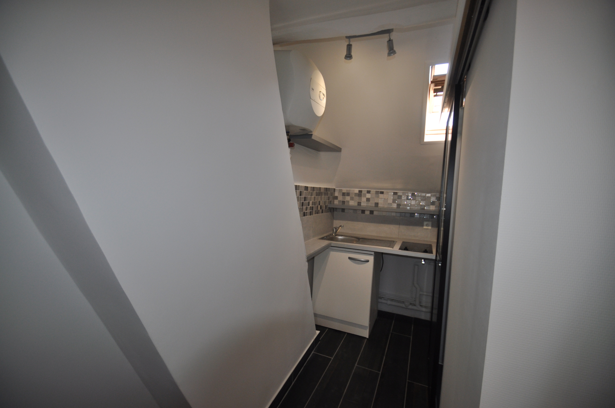 M° Commerce. Dans un immeuble ancien au 4è et dernier sans ascensuer un studio d'une superficie de 23m² au sol comprenant une entrée, une pièce principale une cuisine une salle d'eau avec WC sanibroyeur.